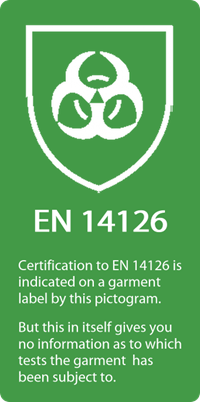 Vì vậy, chỉ riêng chứng nhận EN 14126 KHÔNG chỉ ra rằng quần áo phù hợp để bảo vệ chống lại tác nhân này hoặc bất kỳ tác nhân truyền nhiễm nào khác.